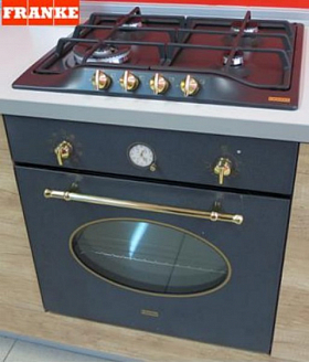 Электрический духовой шкаф Franke CL 85 M GF в расцветке «графит» с позолоченными поворотными регуляторами. Техника в элегантном кантри-стиле обладает повышенной функциональностью и практичностью. Благодаря специальному покрытию Quick Clean духовка не требует особого ухода и легко очищается. Дверца с тройным стеклом всегда остается холодной снаружи. Устройство оснащено таймером с функцией отложенного старта и окончания готовки.