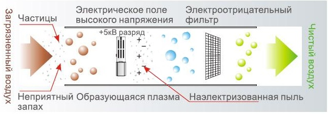 Плазменный пылеулавливатель генерирует зону ионизации, в которой воздух переводится в плазменное состояние под воздействием высокого напряжения. Когда воздух проходит через электростатическое поле, более 95% пыли, дыма и пыльцы задерживаются в электростатическом фильтре.