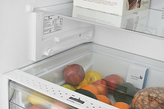 Специальные воздушные каналы и особый фильтр позволяют регулировать уровень влажности отделения для овощей с максимальной точностью, обеспечивая свежесть продуктов, расположенных внутри. Дополнительным преимуществом является наличие специальных направляющих, благодаря которым отделение для овощей выдвигается плавно, а продукты не перемешиваются и не сминаются.Зона свежести