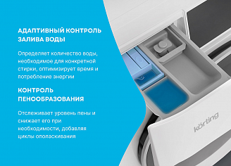 В случае излишнего пенообразования в баке, например, из-за неправильно выбранного типа или количества моющего средства, а также при стирке тканей с большим количеством микроотверстий, стиральная машина самостоятельно настроит длительность и количество полосканий для полного устранения пены и остатков моющего средства в ткани.Контроль баланса барабана