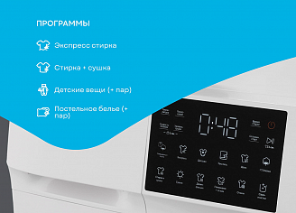 В процессе отжима стиральная машина контролирует, насколько равномерно белье распределено по поверхности барабана и в случае возникновения дисбаланса самостоятельно устраняет его, используя особый алгоритм вращения. В особых случаях, когда дисбаланс не удалось устранить, стиральная машина отключит цикл отжима, тем самым предотвращая сильный шум и вибрации.Функция Пара