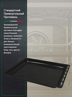 Конвекционный вентилятор обеспечивает постоянную циркуляцию горячего воздуха по всей камере, что позволяет равномерно запекать блюдо со всех сторон, а также экономить время на приготовление. Режим конвекции особенно оценят любители приготовления выпечки.