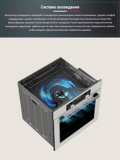 Вентилятор охлаждения, входящий в стандартную комплектацию наших встраиваемых духовых шкафов, поддерживает низкую температуру в стеклянной дверце благодаря вентиляционным отверстиям.Таким образом, внешнее стекло всегда остается холодным. После приготовления пищи вентилятор охлаждения продолжает работать до тех пор, пока температура не опустится до определенного уровня, чтобы охладить горячую внутреннюю поверхность духовки.
