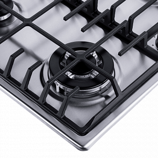 - Обновленный дизайн чугунных решеток в виде крестообразного соединения над конфорками позволяет готовить в посуде разного диаметра, не используя специальные подставки. Решетки расположены вплотную друг к другу, образуя единую рабочую зону. Теперь вы можете просто передвинуть посуду с конфорки на конфорку, не поднимая ее. При этом конфорки спроектированы таким образом, что огонь не перегревает ни чугунные решетки, ни ручки управления.