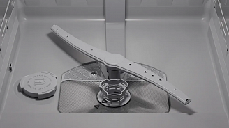 Таблетка моющего средства выходит из дозатора и попадает в специальный отсек в верхней корзине, где полностью растворяется.