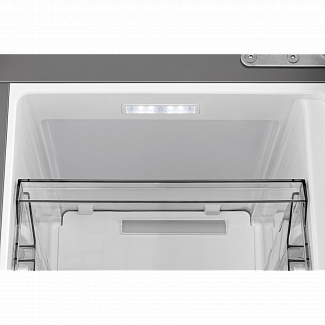 Задняя стенка холодильника покрыта нержавеющей сталью, что обеспечивает равномерное распределение холодного воздуха изнутри наружу. Такое сочетание передовых технологий обеспечивает идеальный температурный режим, предотвращая потерю холодного воздуха и образование инея в холодильнике.Никакой ручной разморозки