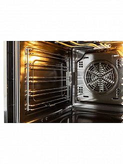 Конвекционный вентилятор обеспечивает постоянную циркуляцию горячего воздуха по всей камере, что позволяет равномерно запекать блюдо со всех сторон, а также экономить время на приготовление. Режим конвекции особенно оценят любители приготовления выпечки.