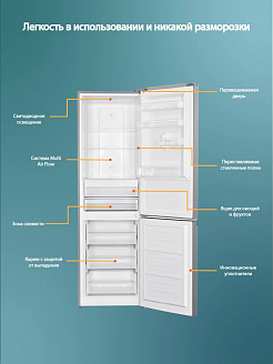 Забудьте о проблемах с инеем! Технология No Frost обеспечивает оптимальную циркуляцию воздуха в холодильнике, поддерживая идеальные условия для хранения продуктов и предотвращая образование льда. Благодаря постоянному обновлению холодного воздуха продукты остаются свежими дольше, А энергия расходуется более эффективно. Больше не нужно очищать замерзшие морозильные камеры – инновационная система помогает сохранять пространство и облегчает повседневное использование. Выберите No Frost для удобства и экономии энергии! Сделано для людей, чтобы вы могли наслаждаться удобством, а не заботиться о технике.