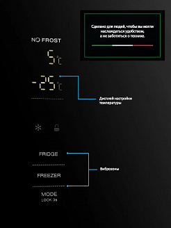 LED - дисплей - основной элемент управления холодильником. Можете корректировать температурный режим в холодильной и морозильной камерах , включать дополнительные функции и блокировать систему управления от случайного изменения параметров.