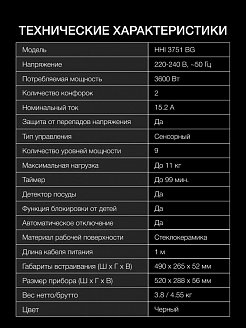 Технические характеристики Варочная панель домино Hyundai HHI 3751 BG