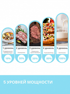 Высокая мощность для быстрого и равномерного приготовления и разогрева блюд.5 УРОВНЕЙ МОЩНОСТИ