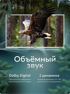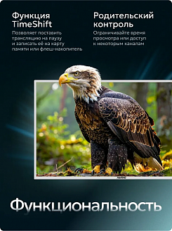 Устройство работает на операционной системе Андроид 11 и платформе Салют ТВ с голосовым помощником, который с легкостью найдет нужный контент в интернете. Пользователи также могут воспользоваться преимуществами GigaChat — искусственного интеллекта, способного отвечать на вопросы, помогать в поиске фильмов, сериалов, музыки и даже поддерживать беседу на самые разные темы. Функция родительского контроля ограничит доступ к нежелательному контенту, если дома есть маленький ребенок, а удобный таймер сна автоматически выключит смарт ТВ в заданное время. Электроника оснащена всеми необходимыми разъемами, в том числе USB 2.0, HDMI и VGA, благодаря которым можно подключить флешку, ПК или игровую приставку. В комплектацию входят подставка под телевизор и пульт дистанционного управления.