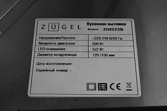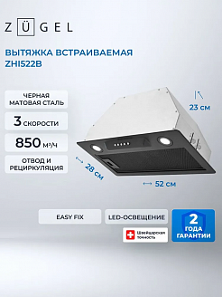 Технические характеристики Встраиваемая вытяжка Zugel ZHI522B