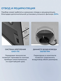 Прибор может работать в режимах отвода и рециркуляции, благодаря дополнительной установке угольного фильтра ZKF4.