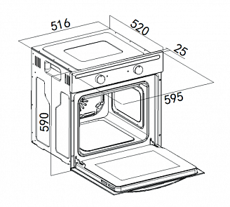 - 4 функции духового шкафа: Подсветка, Нижний нагрев + Верхний нагрев, Нижний нагрев, Верхний нагрев.