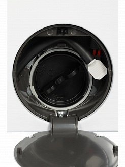 Диаметр люка — 314 мм, угол открытия дверцы — 150°, что упрощает загрузку и выгрузку.
