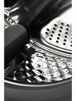 Максимальная загрузка составляет 10,5 кг, что позволяет стирать крупные партии белья: от постельных комплектов и полотенец до верхней одежды и пледов. Скорость отжима до 1400 об/мин эффективно удаляет влагу и помогает сократить общее время сушки.
