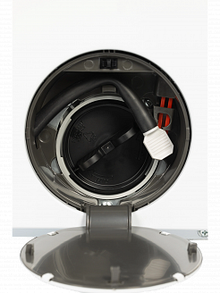 Диаметр люка — 314 мм, угол открытия дверцы — 150°, что упрощает загрузку и выгрузку.