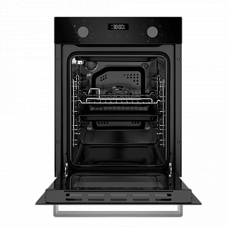 Компактный электрический встраиваемый духовой шкаф объемом 51 л и шириной всего 45 см позволяет готовить ваши любимые блюда, разместив решетку или противень на одном из 5 уровней боковых направляющих. Внутреннее покрытие камеры выполнено из специальной легкоочищающейся эмали черного цвета.