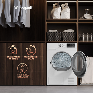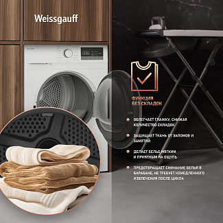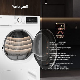 - Низкий уровень шума 66 дБ сделает работу с сушильной машиной ещё более комфортной и удобной, ведь Weissgauff знает, как добиться по-настоящему высокой производительности без лишнего шума!