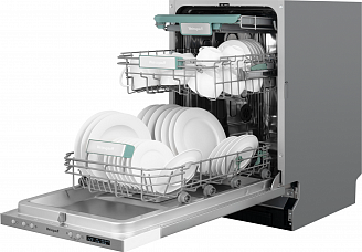 - Вертикальная регулировка средней корзины по высоте, как в загруженном, так и в пустом состоянии, позволит вам буквально на лету изменять внутреннее пространство посудомоечной машины, размещая посуду наиболее эргономичным образом.