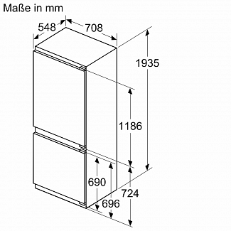 Встраиваемый холодильник с морозильной камерой снизу, 193.5 x 70.8 см, плоские петли с доводчиком