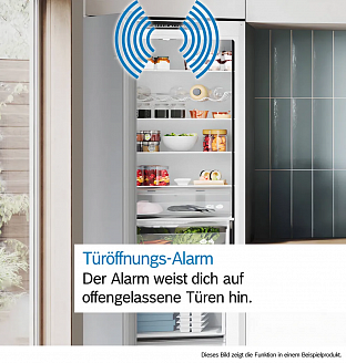 Благодаря подсветке в морозильной камере Bosch, ваша морозильная камера идеально освещена, так как свет падает прямо на ящики, когда они открыты. Замороженные продукты не останутся незамеченными, и вы найдете их за считанные секунды в своей освещенной морозильной камере. Если у вас есть прибор с поддержкой Home Connect, вы можете дополнительно активировать фоновую подсветку в приложении Home Connect и настроить интенсивность освещения в соответствии с вашими предпочтениями.Сигнализация, если вы забудете закрыть дверь.