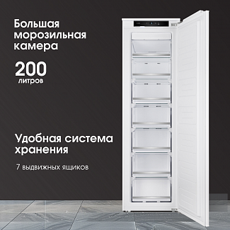 Конструктивные особенности: 7 выдвижных ящиков, LED дисплей с выбором температуры, светодиодное освещение камеры, перевешиваемая дверца
