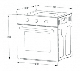 - 4 функции духового шкафа: Подсветка, Нижний нагрев + Верхний нагрев, Нижний нагрев, Верхний нагрев.
