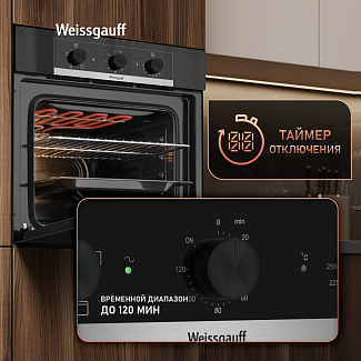 - Дизайн в черном цвете - станет финальным штрихом в совершенстве облика этой модели. Каждый раз, взаимодействуя с духовым шкафом от Weissgauff, вы будете в полной мере ощущать, как он способен нагревать не только еду, но и согревать душу, став настоящим сердцем вашего уютного домашнего очага.