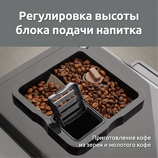 12 напитков на выбор с индивидуальной настройкой каждого: эспрессо, капучино, черный кофе, флэт уайт, американо, латте, ристретто, лунго, кортадо, латте макиато, молочная пенка, горячая вода