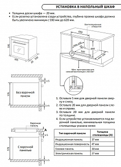 Режимы работы духовки: верхний + нижний нагрев + конвекция, гриль, нижний + верхний нагрев, нижний нагрев, освещение, размораживание, турбогриль, турбогриль + конвекция