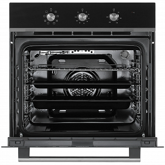 Встроенный вентилятор отводит тепло и предотвращает перегрев поверхностей. На панели управления духового шкафа DEXP 1MMT-B расположены утапливаемые поворотные переключатели. Для программирования определенного времени работы есть таймер с автоотключением. Внутренние стенки с покрытием из эмалированной стали и съемное стекло на дверце просто очищаются от загрязнений и жирового налета.