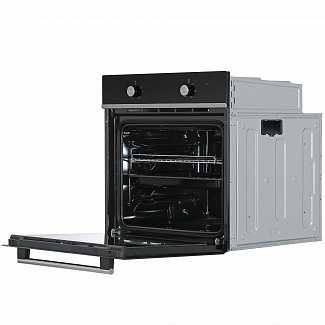 Галогенная лампа равномерно освещает внутреннее пространство. Покрытие стенок из эмалированной стали практично в уходе. Оно просто очищается от жировых брызг и нагара. Встроенный вентилятор отводит тепло и уменьшает нагрев поверхностей вокруг духового шкафа DEXP 1MS-B.