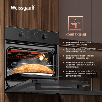 - Дизайн в черном цвете - станет финальным штрихом в совершенстве облика этой модели. Каждый раз, взаимодействуя с духовым шкафом от Weissgauff, вы будете в полной мере ощущать, как он способен нагревать не только еду, но и согревать душу, став настоящим сердцем вашего уютного домашнего очага.