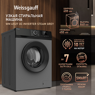 Технические характеристики Фронтальная стиральная машина Weissgauff WM 45127 DC Inverter Steam Grey