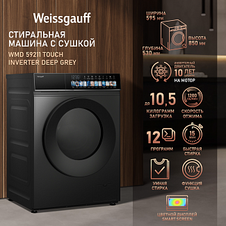 Фронтальная стиральная машина Weissgauff WMD 59211 Touch Inverter Deep Grey