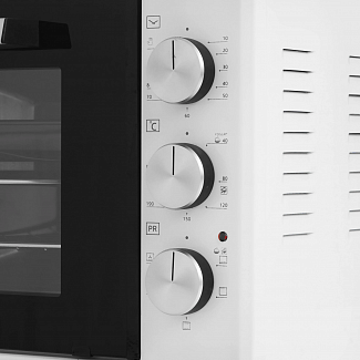 Безопасность и удобство эксплуатации гарантируются двойным стеклом дверцы, которое надежно удерживает тепло внутри, не перегреваясь снаружи. Механический таймер поможет установить точное время приготовления, избавляя вас от лишних забот и позволяя сосредоточиться на процессе творчества на кухне.