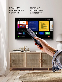 Телевизор BQ 32FSF03B поддерживает Smart TV на базе Салют ТВ с голосовым ассистентом, что открывает перед вами безграничные возможности для доступа к приложениям, играм и контенту онлайн. Пользоваться всеми преимуществами интернета на большом экране стало еще проще и удобнее.