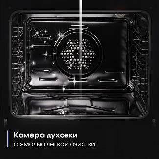 • Эмаль Easy Clean не имеет пор, в которых могла бы застрять пища или жировые брызги, что значительно упрощает процесс поддержания духовки в чистоте.