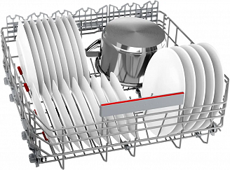 Вместительный выдвижной ящик VarioDrawer позволяет обойтись без отдельной корзины для столовых приборов, обеспечивая оптимальное использование пространства - теперь есть возможность разметить до 14 комплектов посуды (в моделях шириной 45 см - до 10 комплектов).