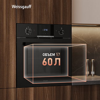 - Объем XL 60 литров дает вам полную уверенность в том, что приобретая этот духовой шкаф, вы сможете разместить в нем сразу весь необходимый объем пищи, и даже профессионально работать на нескольких уровнях одновременно, порадовав себя и своих близких настоящим пиром, приготовленным в духовом шкафу Weissgauff на действительно ресторанном уровне.