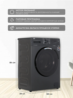 Для снижения уровня шума, а также экономного энергопотребления в машинке установлен инверторный мотор ProSmart. Вы можете включать стиральную машину на ночь и не беспокоиться, что ее будет слышно.
