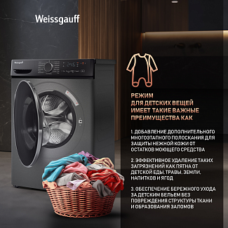- Функция "Пар" - это инновационное решение от компании Weissgauff, которое позволит придать свежести вещам, а также устранить неприятный запах, легкие загрязнения и складки на одежде, бережно сохраняя при этом структуру волокон ткани. При выборе режимов, имеющих в своем цикле данную функцию, пар добавляется в ходе цикла в процессе работы программы.