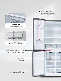 Количество полок/ящиков: В холодильной камере – 2+2 / В морозильной камере – 4