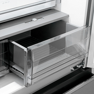 Большие вместительные ящики предоставляют вам достаточно места для хранения крупных продуктов, а прозрачный ящик позволит легко увидеть, что внутри.