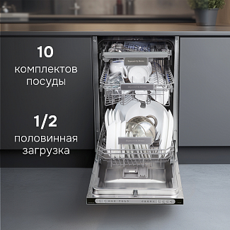Процесс мойки посуды можно отложить на заданное время, например, не дожидаясь момента действия экономичного тарифа электроэнергии, установить таймер на включение прибора в ночное время.