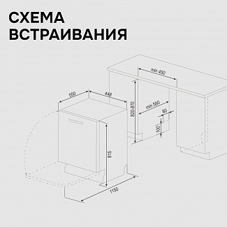 Габариты ниши для встраивания (ШхГхВ), мм 450*580*820