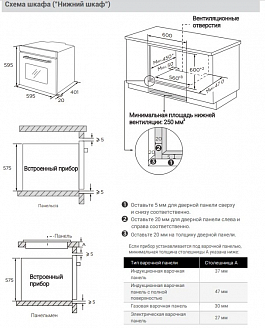 Режимы работы духовки: Аэрогриль, верхний + нижний нагрев + конвекция, верхний нагрев + конвекция, гриль + конвекция, нижний нагрев + конвекция, освещение