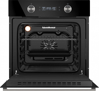 Особенности конструкции: Вентилятор охлаждения, дисплей, полностью стеклянная внутренняя поверхность дверцы духовки